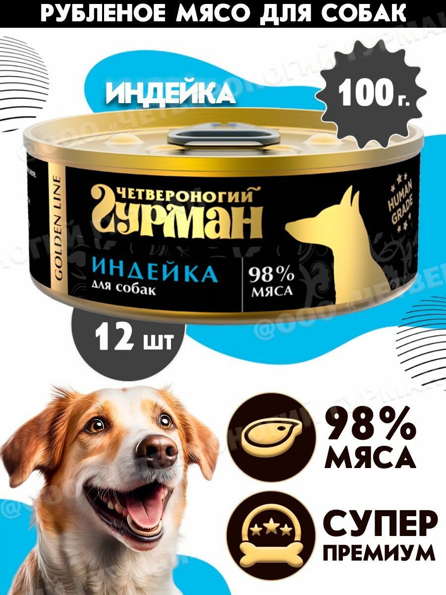 Купить Корм консервированный для собак Четвероногий Гурман "Golden line Индейка", 100 г х 12 шт.