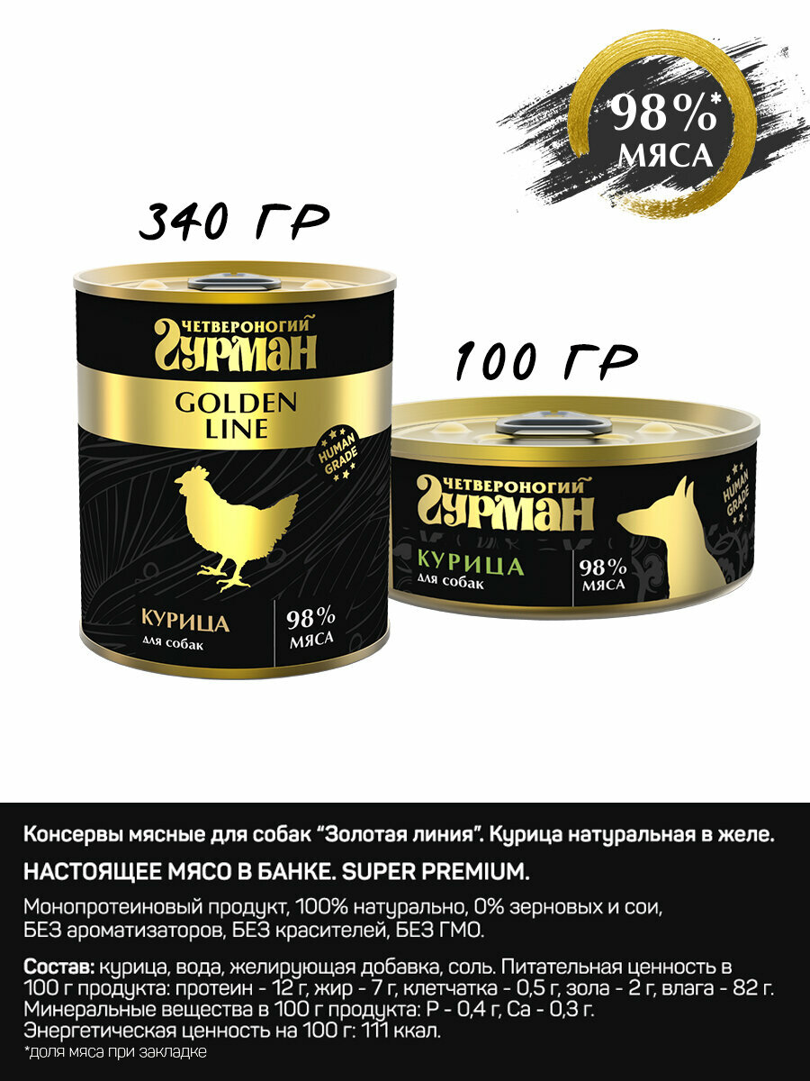 Купить Влажный корм для собак Четвероногий Гурман Golden line Курица натуральная упаковка 6 шт х 340 г