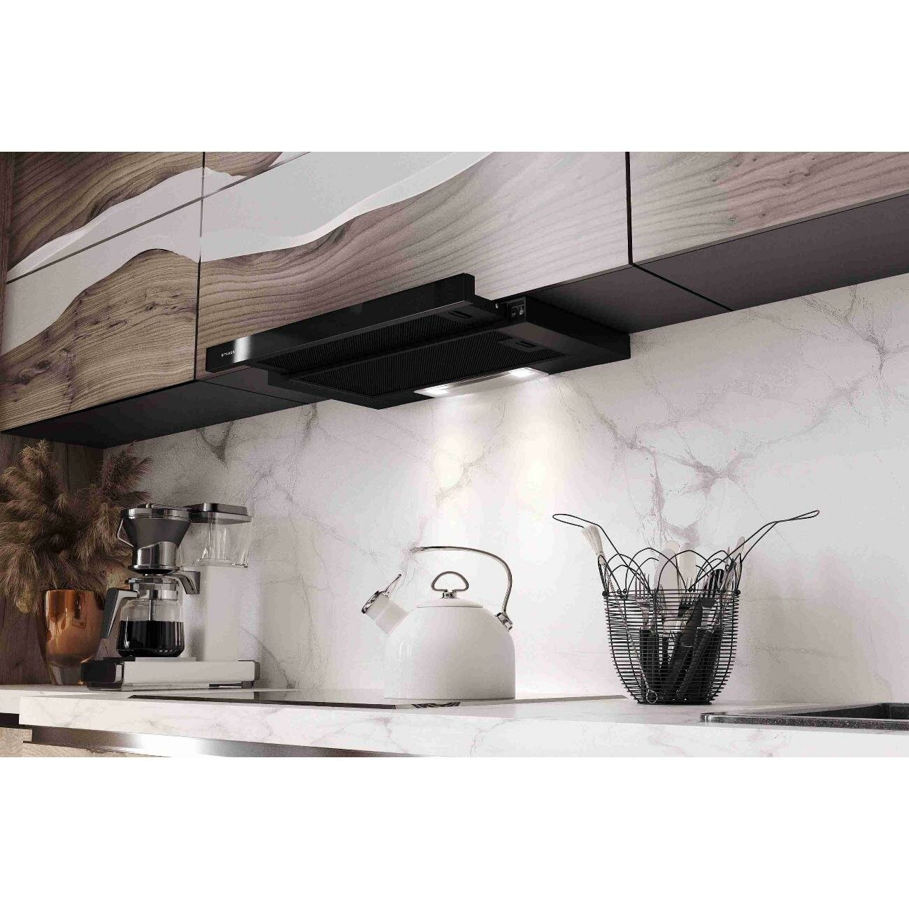 | Плюсы: | Хорошо и тихо работает, удобно когда зажигается свет при выдвижении. Вытяжка воздуха приличная, эффект есть. |
