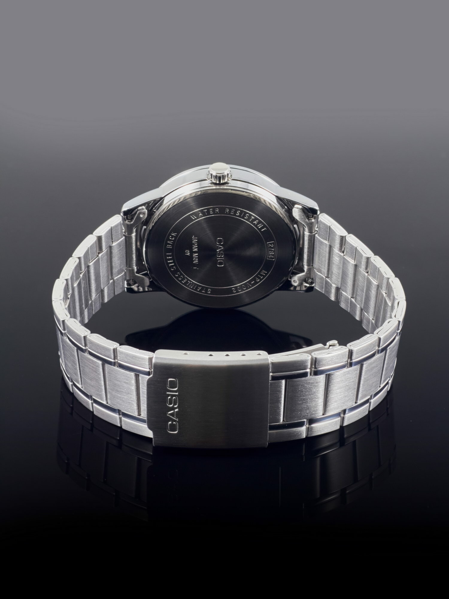 MTP-V002D-1B Casio наручные часы кварцевые WR30 (3 атм) мужские хром отображение числа минеральное стекло
