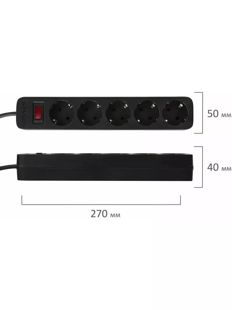 Удлинитель сетевой фильтр SONNEN, с предохранителем, с заземлением, 2200 Вт, 5 розеток, 3х1,0 мм, выключатель на корпусе