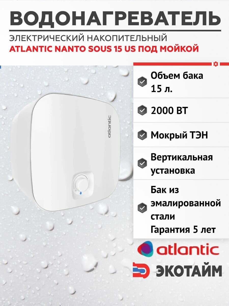 Водонагреватели накопительный Atlantic NANTO SOUS 15 US под мойкой интересное: