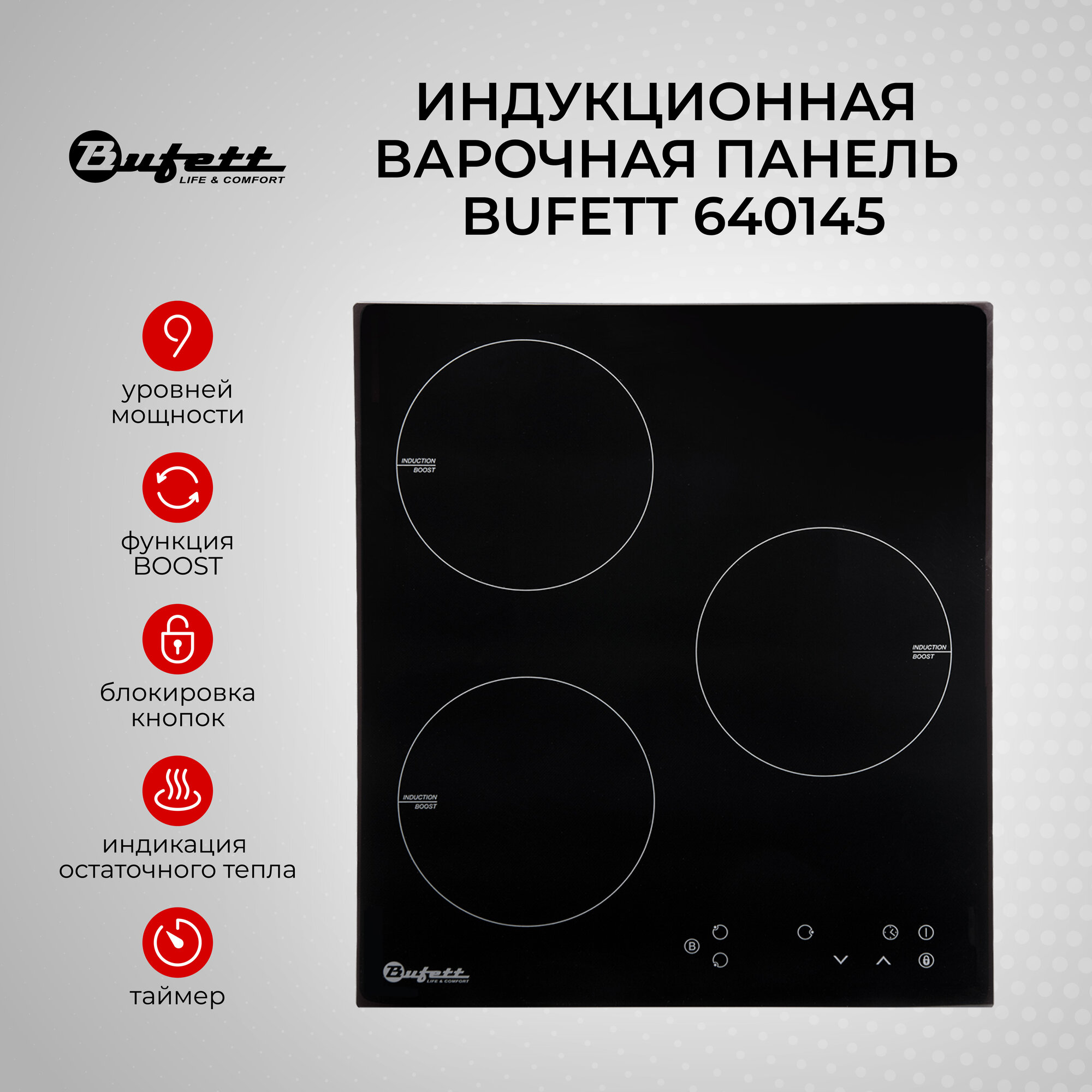 Варочная панель индукционная встраиваемая 3 конфорки BUFETT 640145, 5000 Вт интересное: