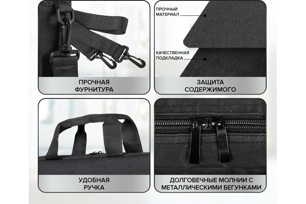 Сумка-портфель Brauberg Practical с отделением для ноутбука 15,6, черная, 29х40х7 см (270829)