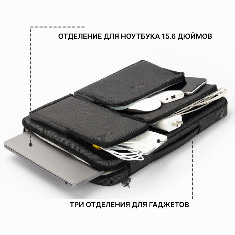 Сумка для ноутбука 15.6 дюймов / Портфель для ноутбука / Сумка для гаджетов / темно серая интересное: