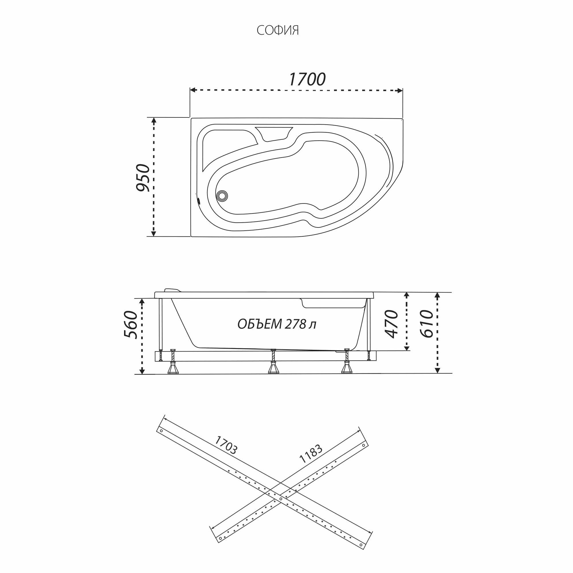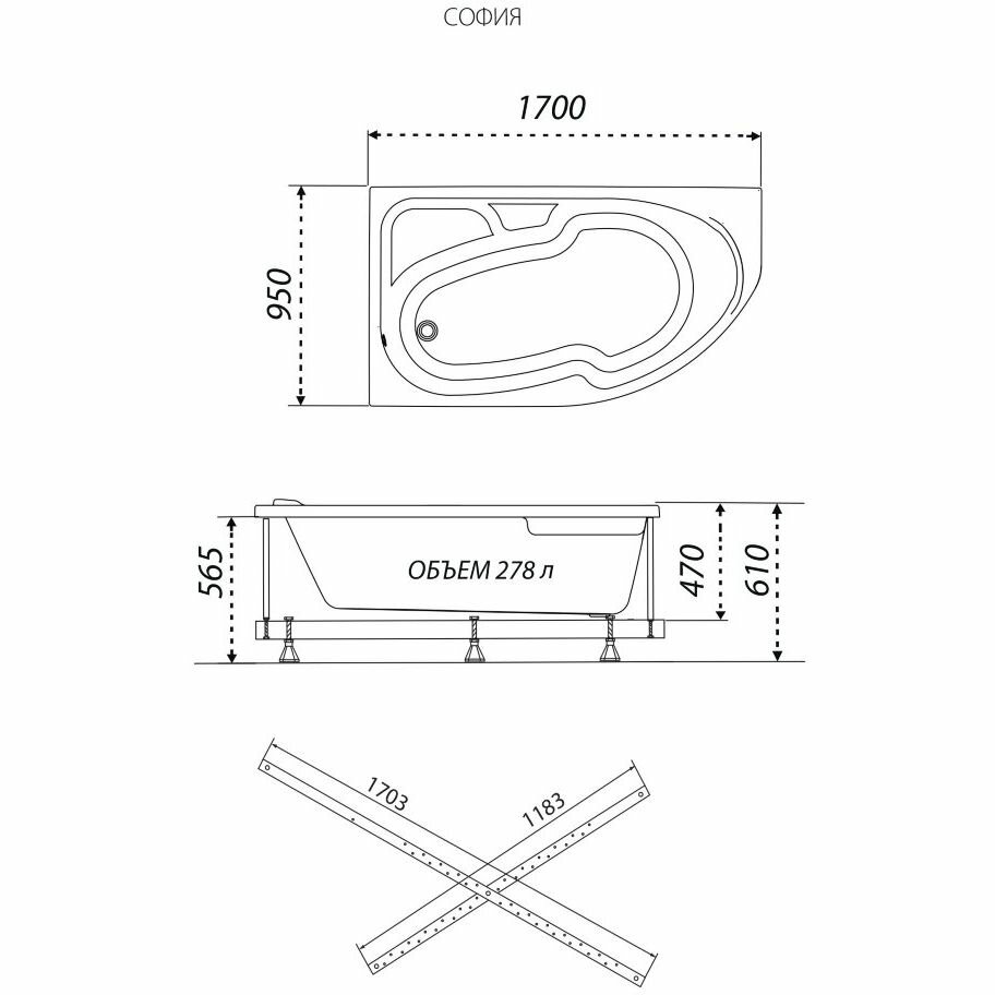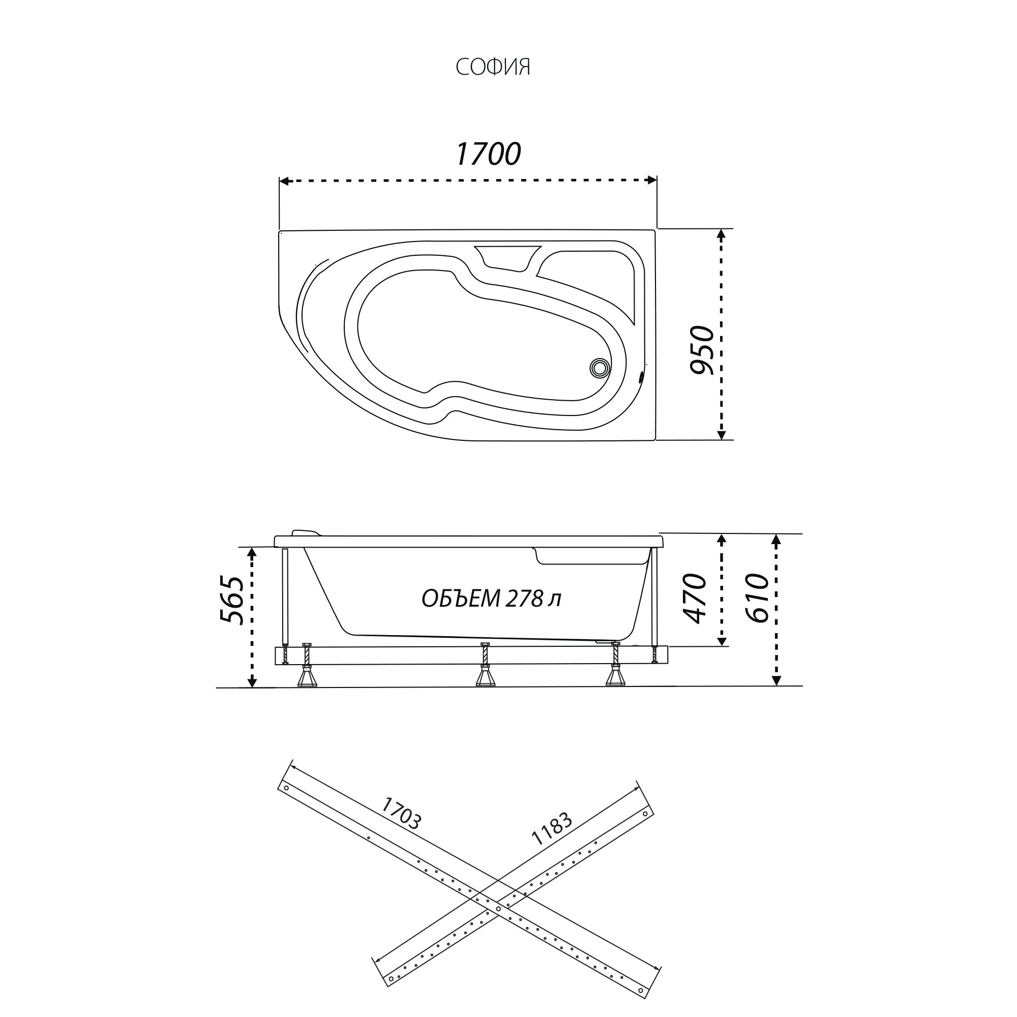 Купить Ванна обрезная асимметричная Тритон акриловая София 1700х950х610 мм левая (Щ0000046115), (без монтажного комплекта/ножек)
