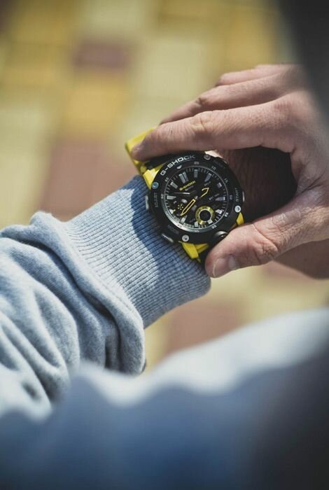 Не маленькие часы, но на руке почти не ощущаются так как в составе легкий и прочный карбон! Понравились в желто-черном цвете. |