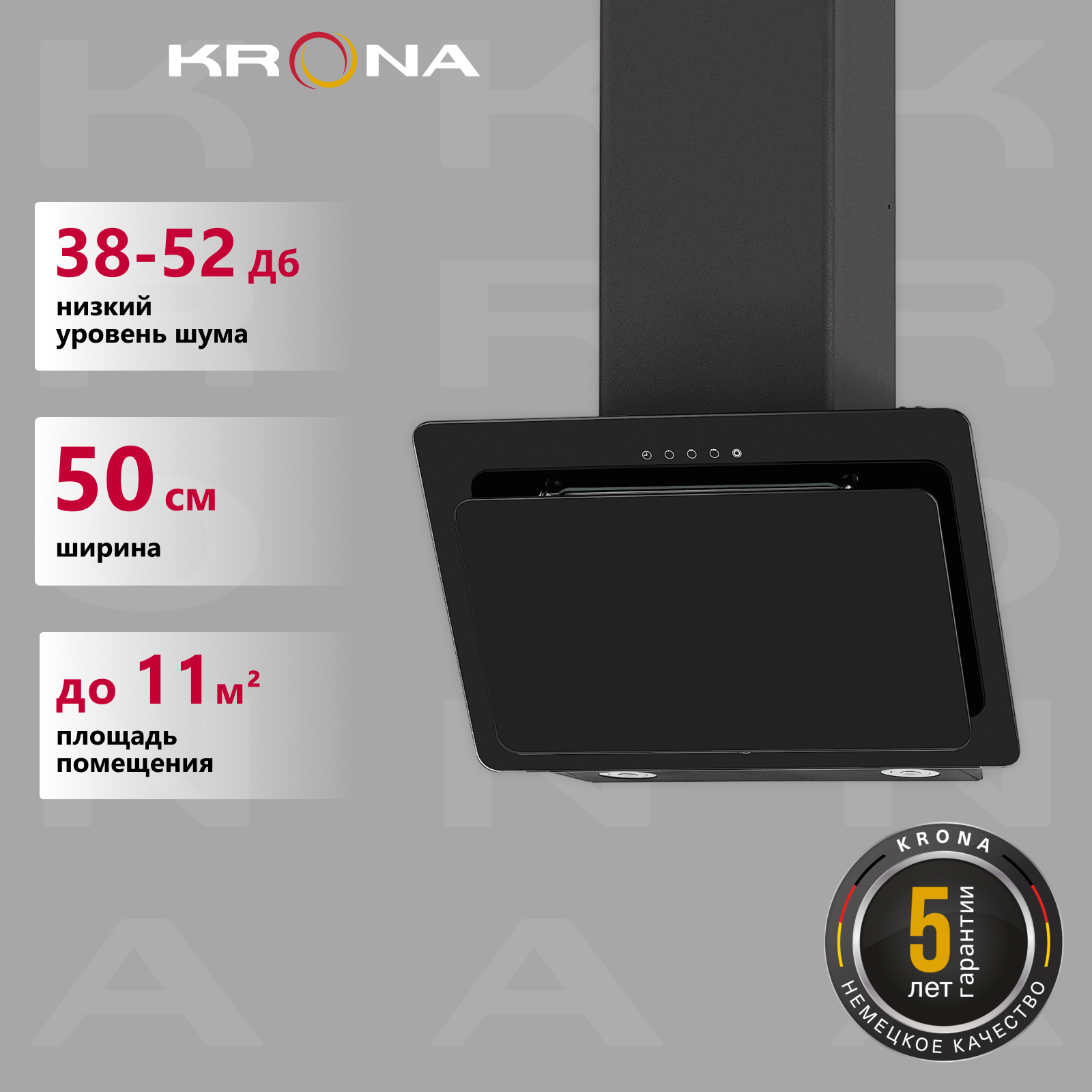 Вытяжка наклонная 50 см Krona Liva 500 S, черная