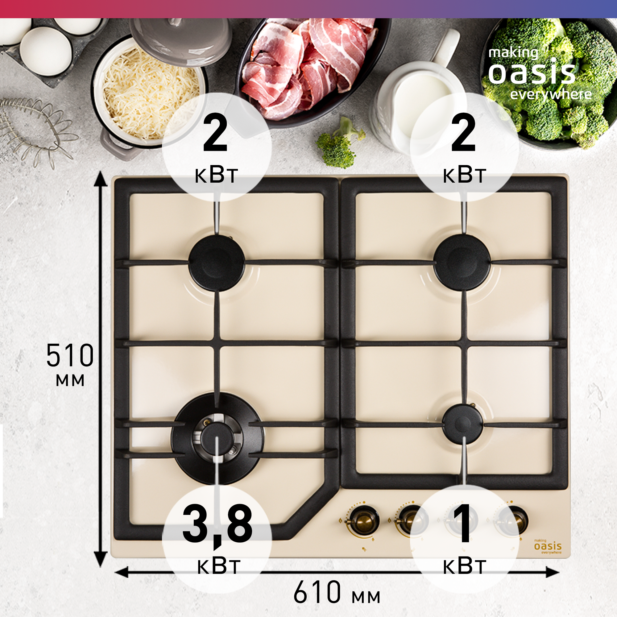 Газовая встраиваемая варочная панель making Oasis everywhere P-MRT (F)
