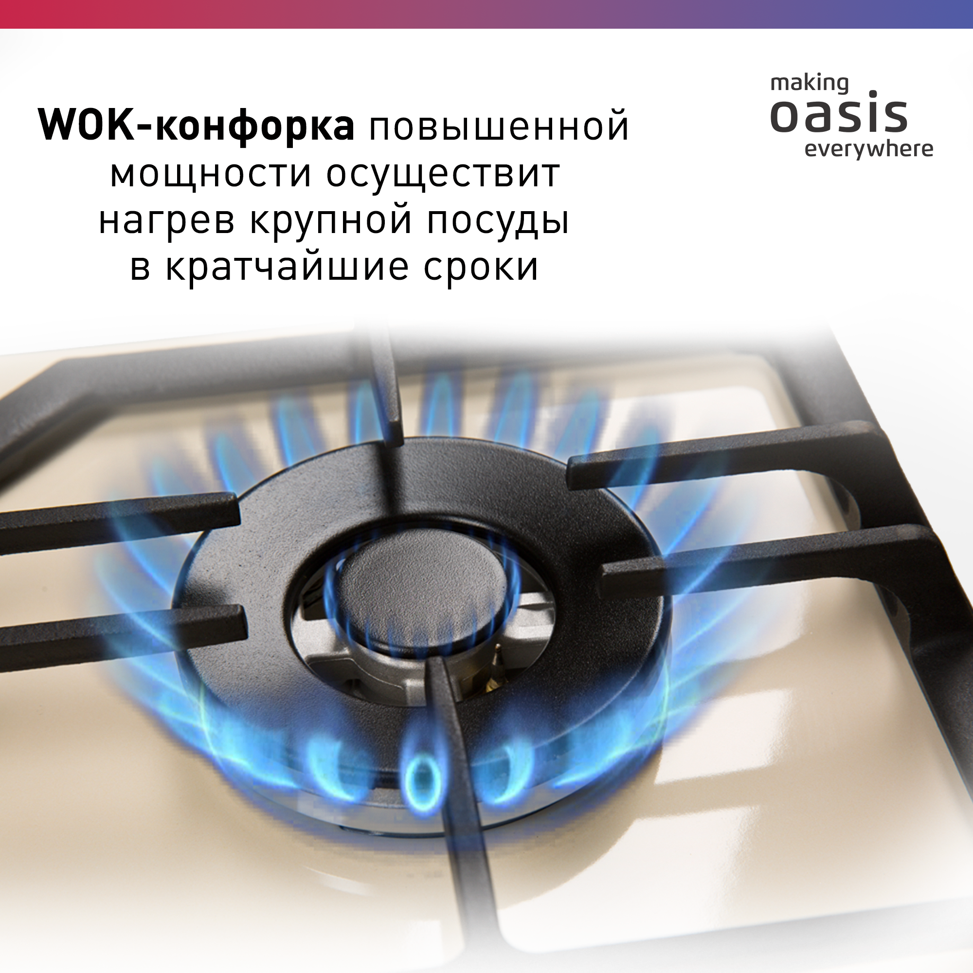 поверхность газ oasis p-mrt (f) /беж., металл, г/к, чугун. решетки, wok-конфорка sabaf/ интересное: