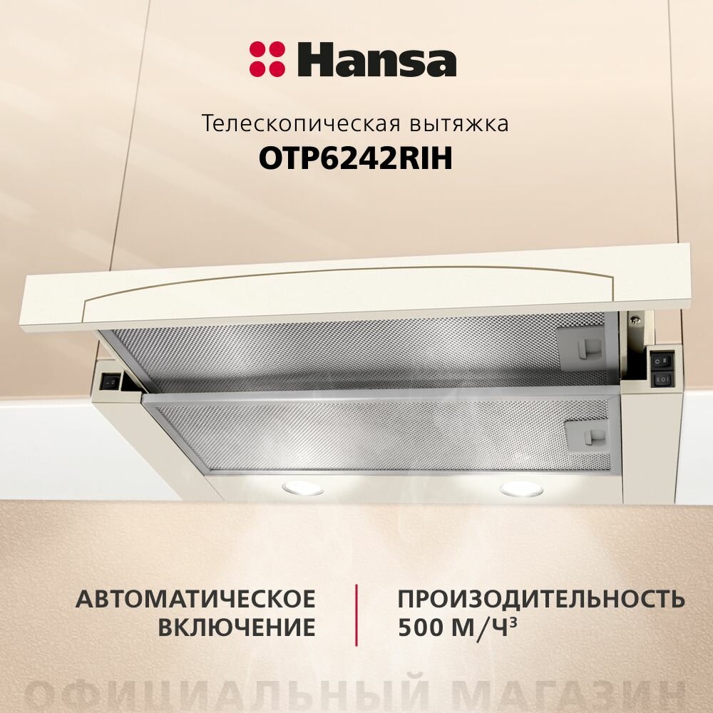 Телескопическая вытяжка Hansa OTP6242RIH, 60 см, механическое управление, 3 скорости, режимы отвода и рециркуляции, светодиодная подсветка, цвета слоновой кости