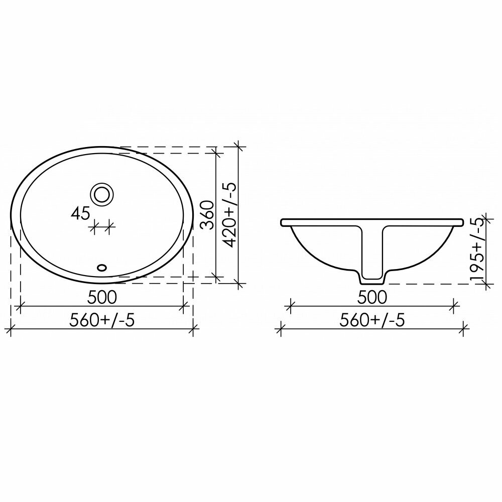 Купить Умывальник овальный встраиваемый под столешницу Element 560*435*200мм, с крепежом и шаблоном для установки CN6043