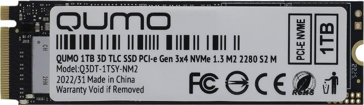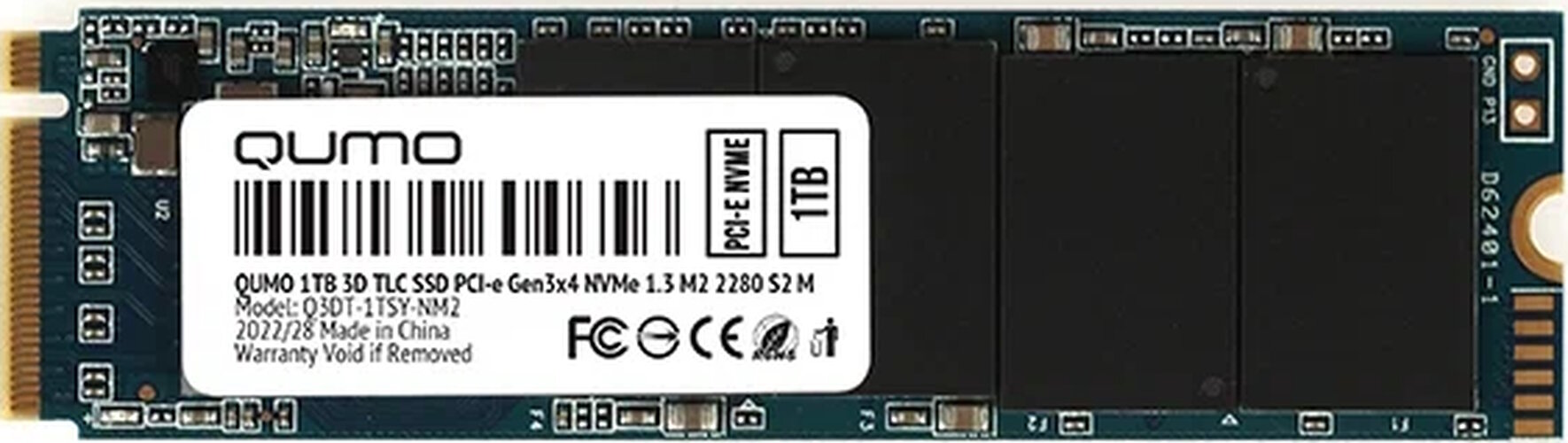 Накопитель SSD 1TB PCIe Gen3x4 NVMe 1.3 M2 2280 Qumo Novation TLC 3D (q3dt-1tsy-nm2) R/W 2100/1700 M
