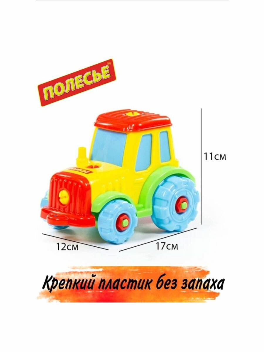 | Плюсы: | Подробный конструктор, разбирается до основания. Ребенок быстро учится откручивать винты отвёрткой, разбирать и заново собирать трактор. Колеса крутятся, в собранном виде рабочая полноценная модель. Яркая и обучающая игрушка. |