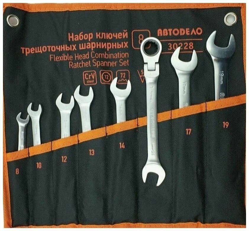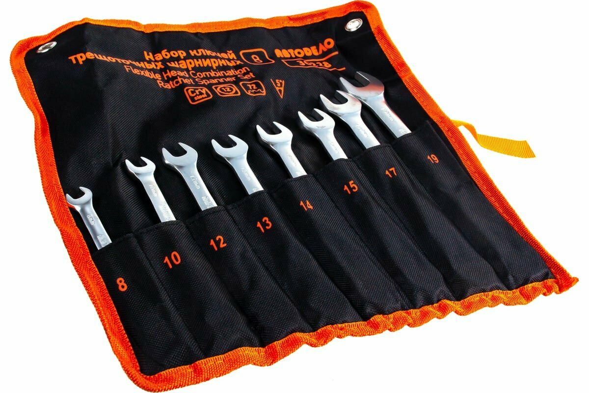 Набор Ключей Комбинированных Трещоточных Шарнирных 8 Пр. 8-19 Мм Сумка Автодело АвтоDело арт. 30228