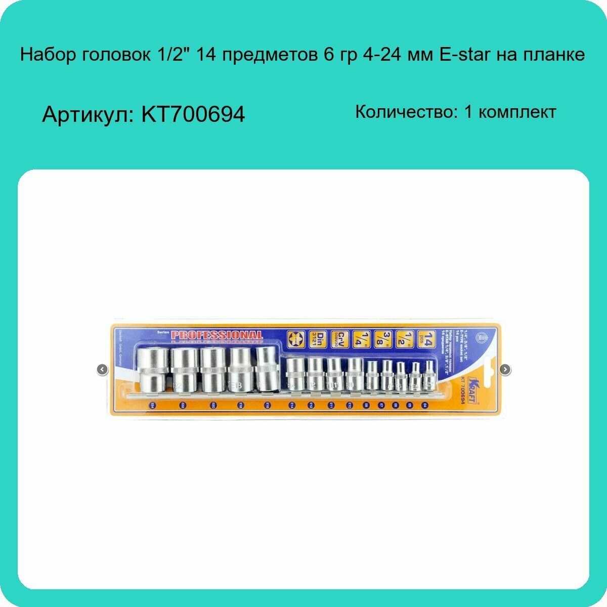 Набор головок 1/2" 14 пр. 6 гр 4-24 мм E-star на планке Kraft