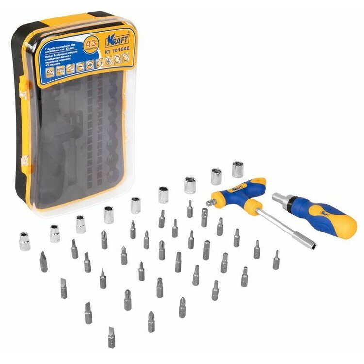 KRAFT KT701042 Набор: Т-образная отвертка с насадками-битами и торцевыми головками 43 предмета