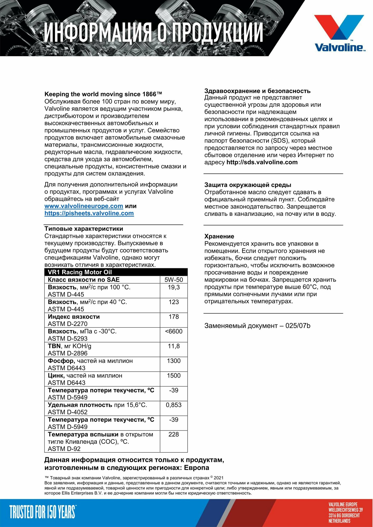 | Производитель | VALVOLINE |
