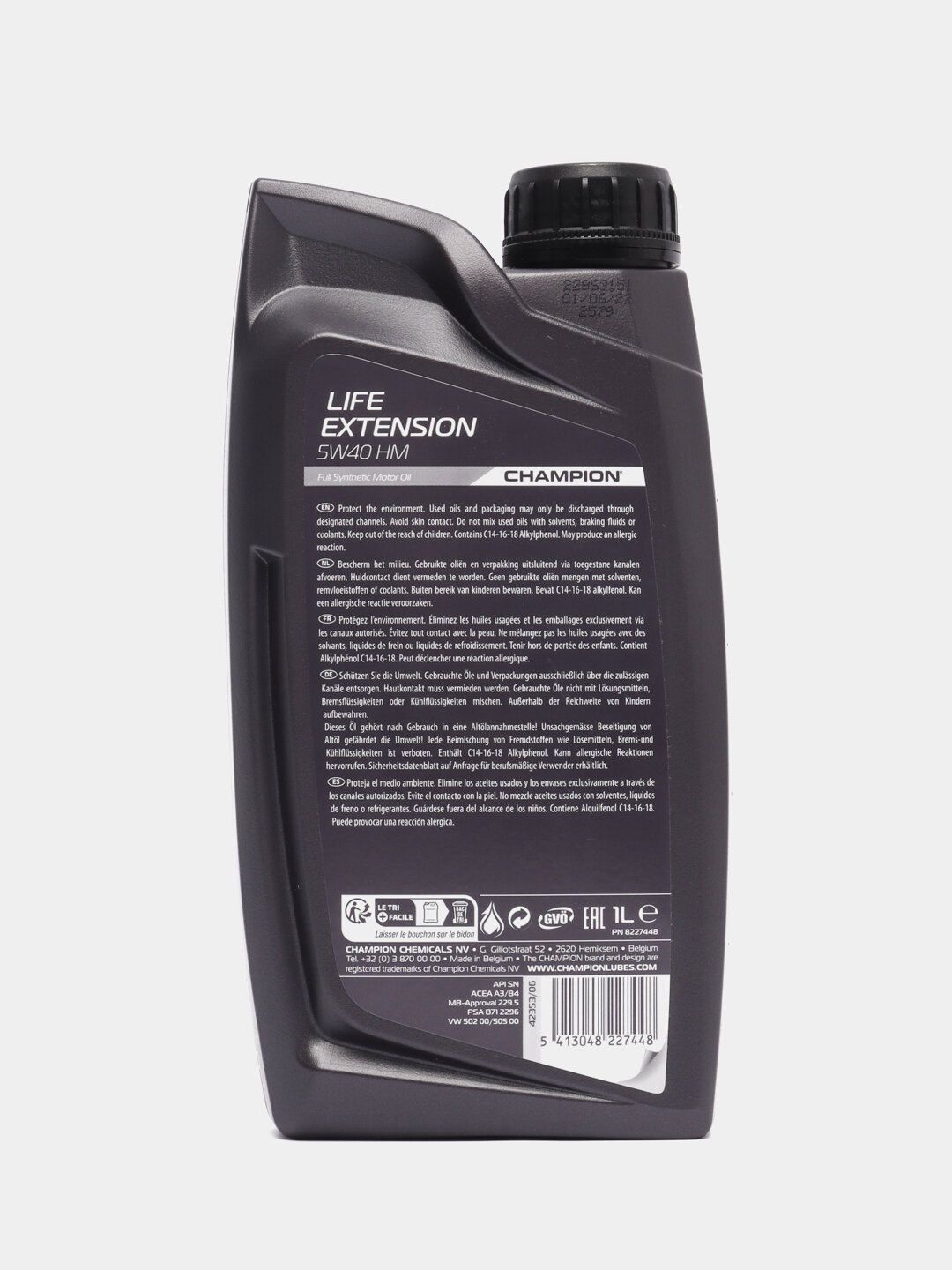 CHAMPION OIL 8227448 Масло мот. CHAMPION LIFE EXTENSION 5W40 HM, ACEA: A3/B4-16, API: SN/CF (1л) синт.