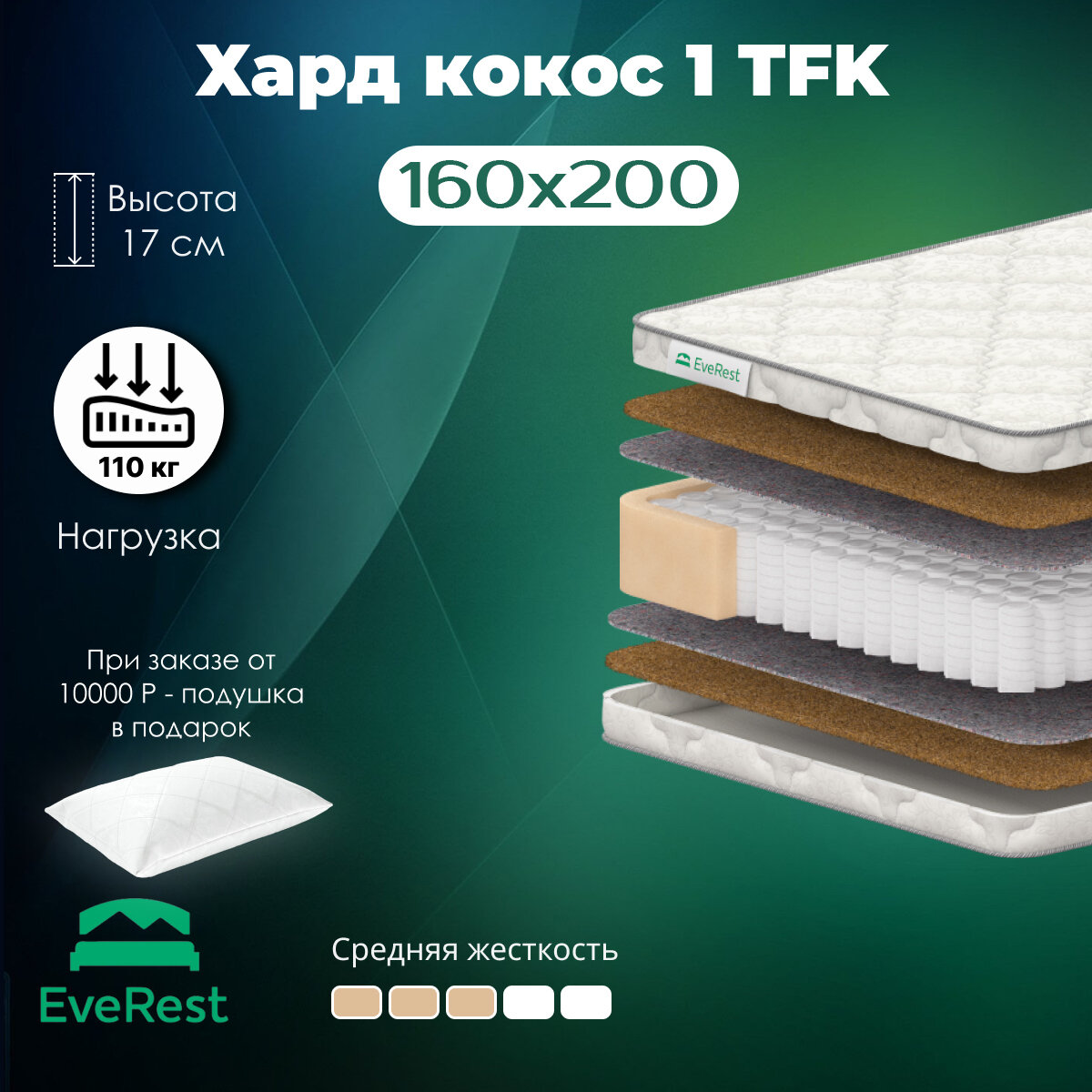 Матрас EveRest Хард Кокос 10 TFK, Размер 155х180 см