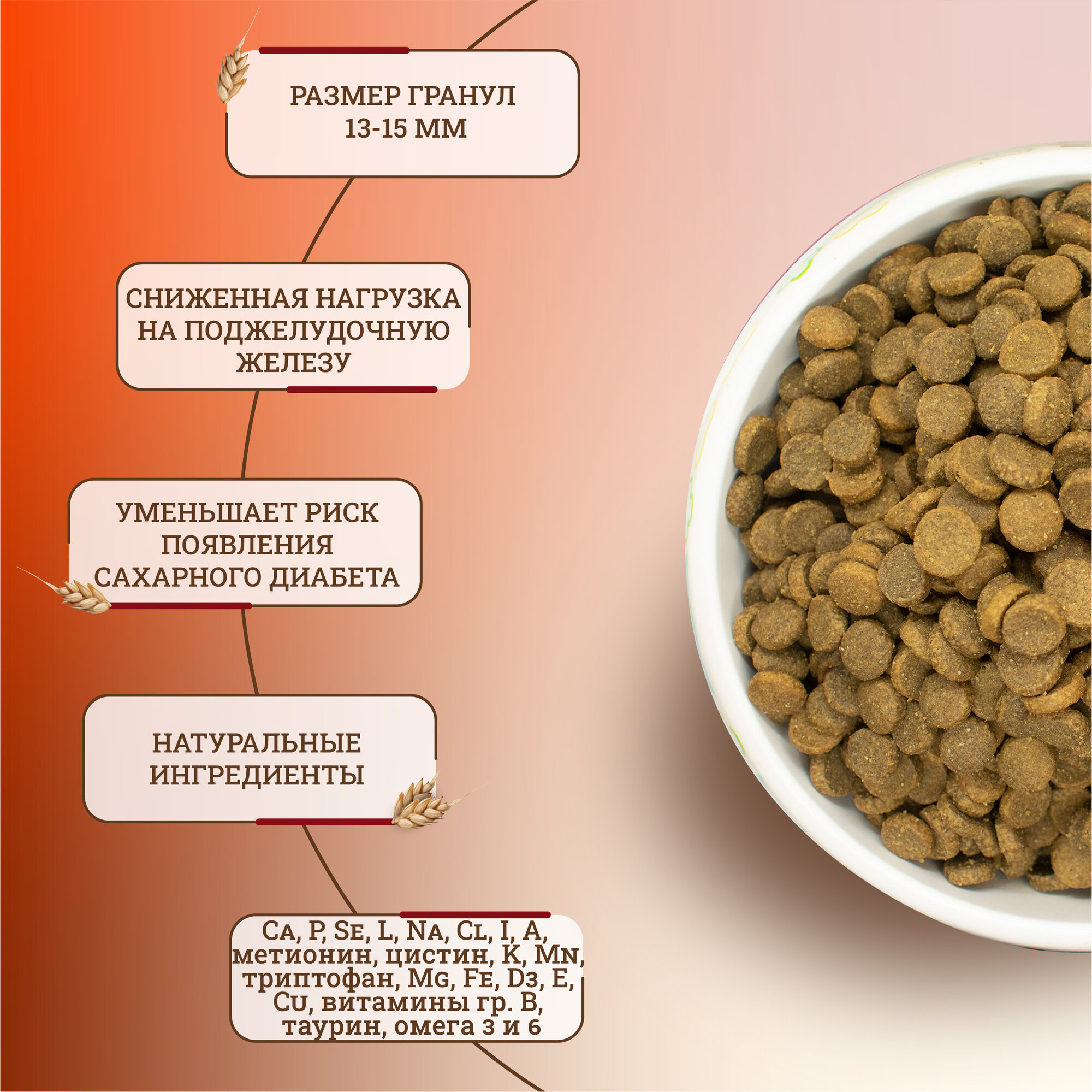 | Плюсы: | Качественный и полнорационный состав с достаточным количеством мяса и питательных веществ (в сегменте «премиум» значительно лучше аналогов), гипоаллергенность, низкокалорийность, удобный формат гранул, приятный вкус (судя по собаке), цена, постоянное наличие корма в продаже, доверие к бренду. |