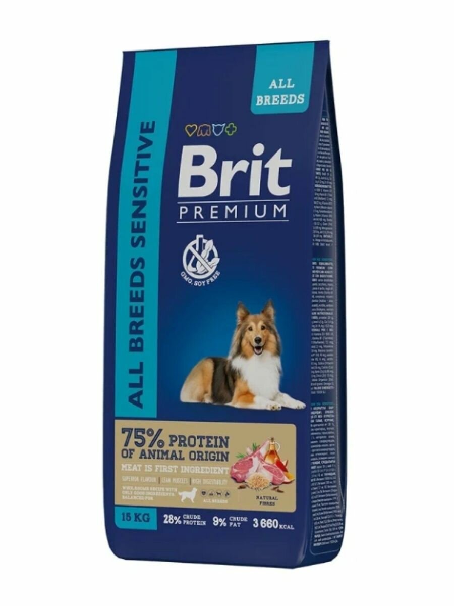 Brit Premium Dog Sensitive 15кг ягненок и индейка (чувствительное пищеварение) сухой корм для собак всех пород