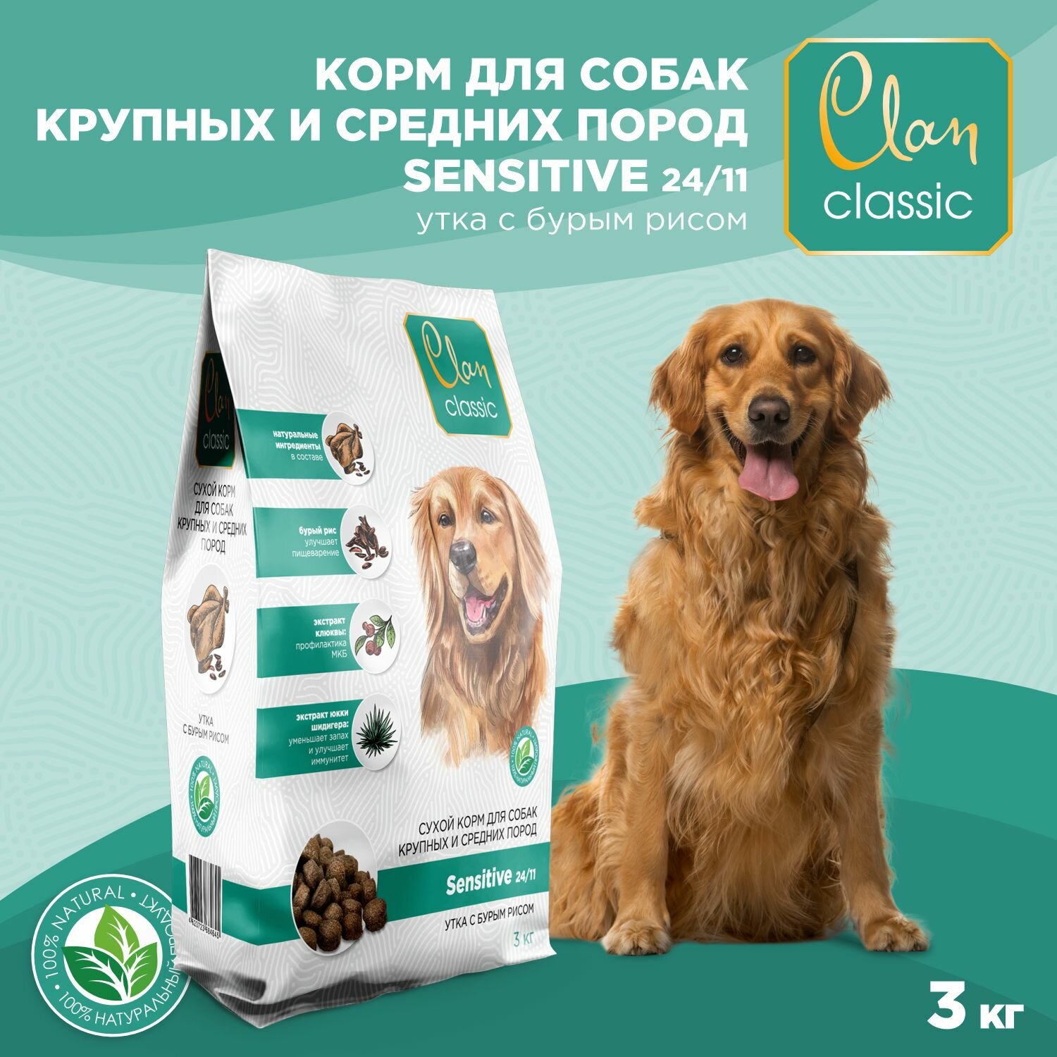 CLAN CLASSIC Sensitive-24/11 корм сухой для собак крупных и средних пород Утка с бурым рисом 3кг