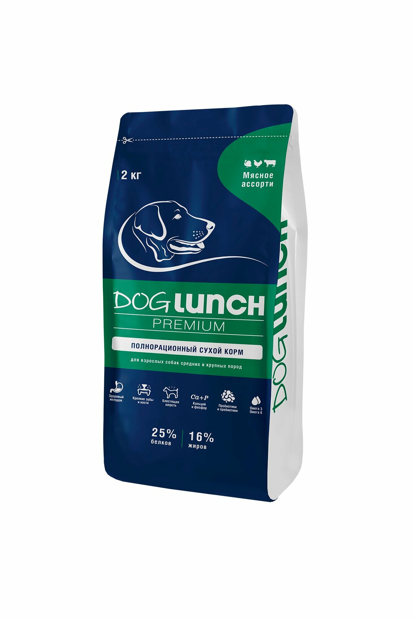 Dog Lunch Премиум сухой корм для собак средних и крупных пород мясное ассорти 2кг