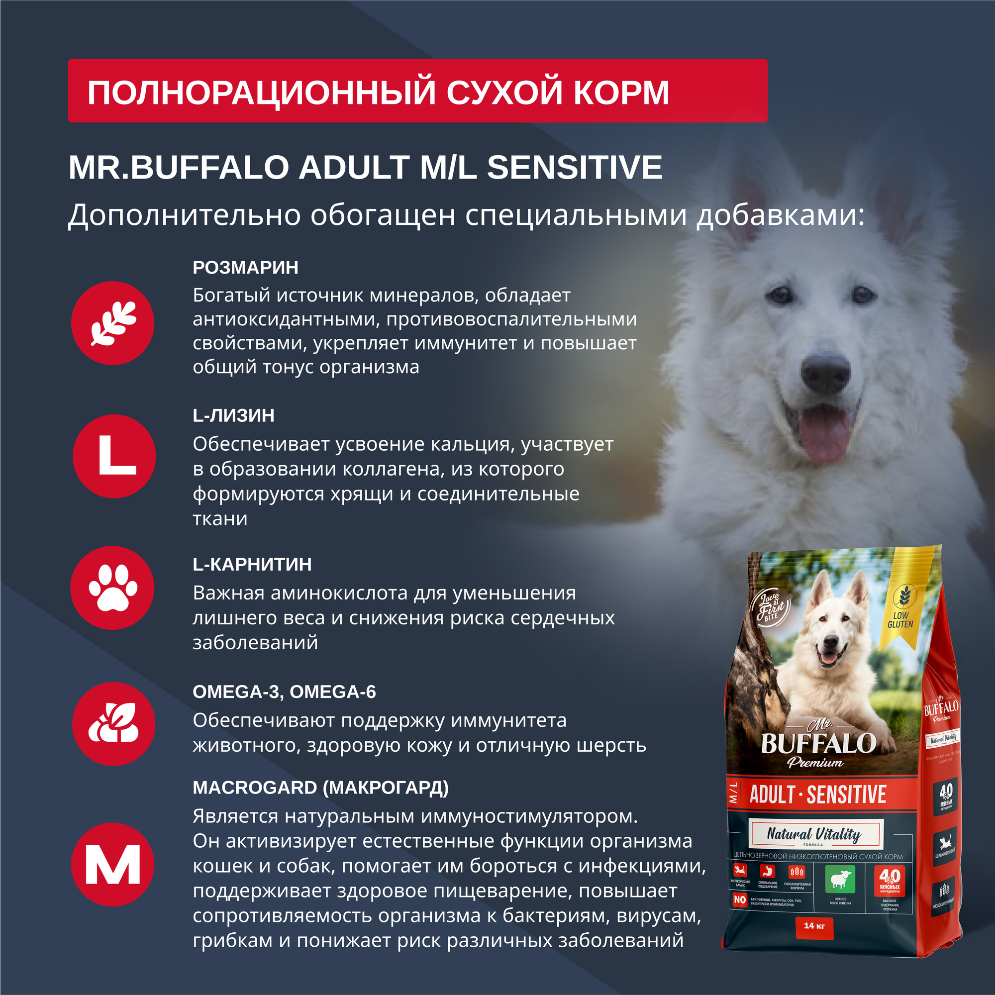 MR.BUFFALO M/L SENSITIVE для взрослых собак средних и крупных пород с чувствительным пищеварением с ягненком (2 кг)