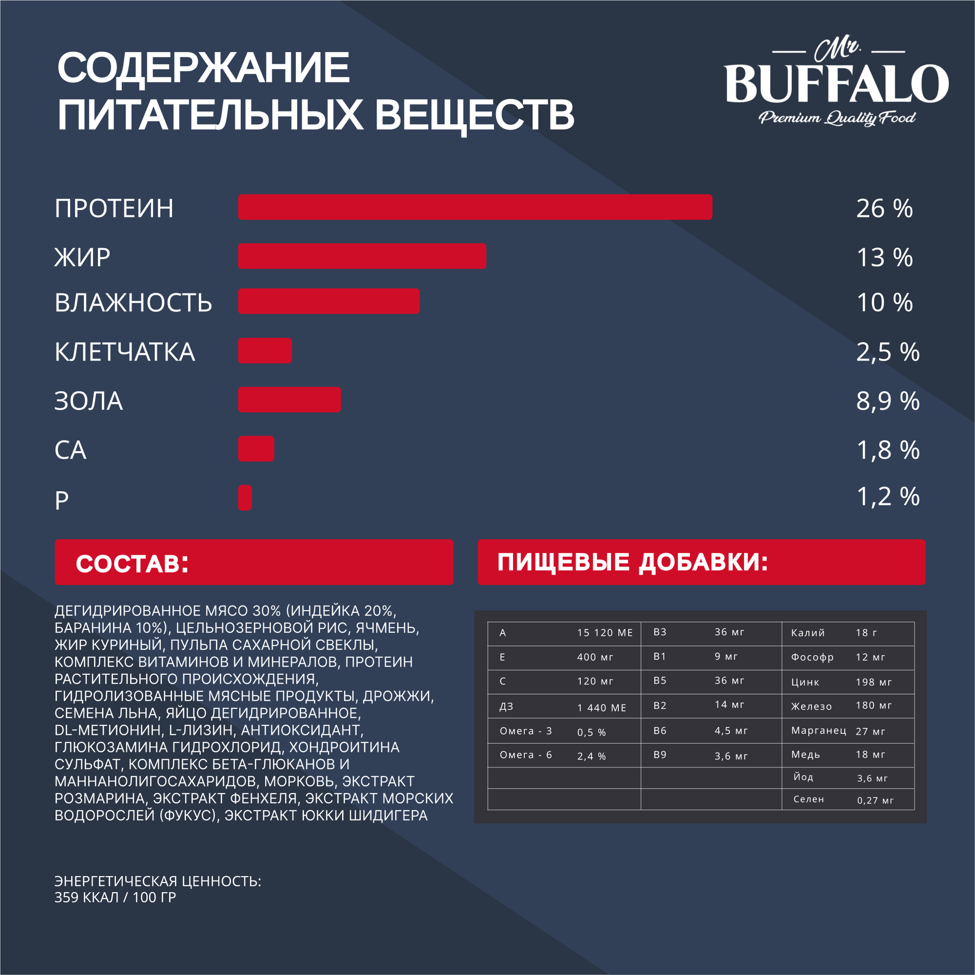 Mr.Buffalo Sensitive (Баффало) 1шт -2кг с ягненком чувст. пищев. сухой для собак средних и крупных пород