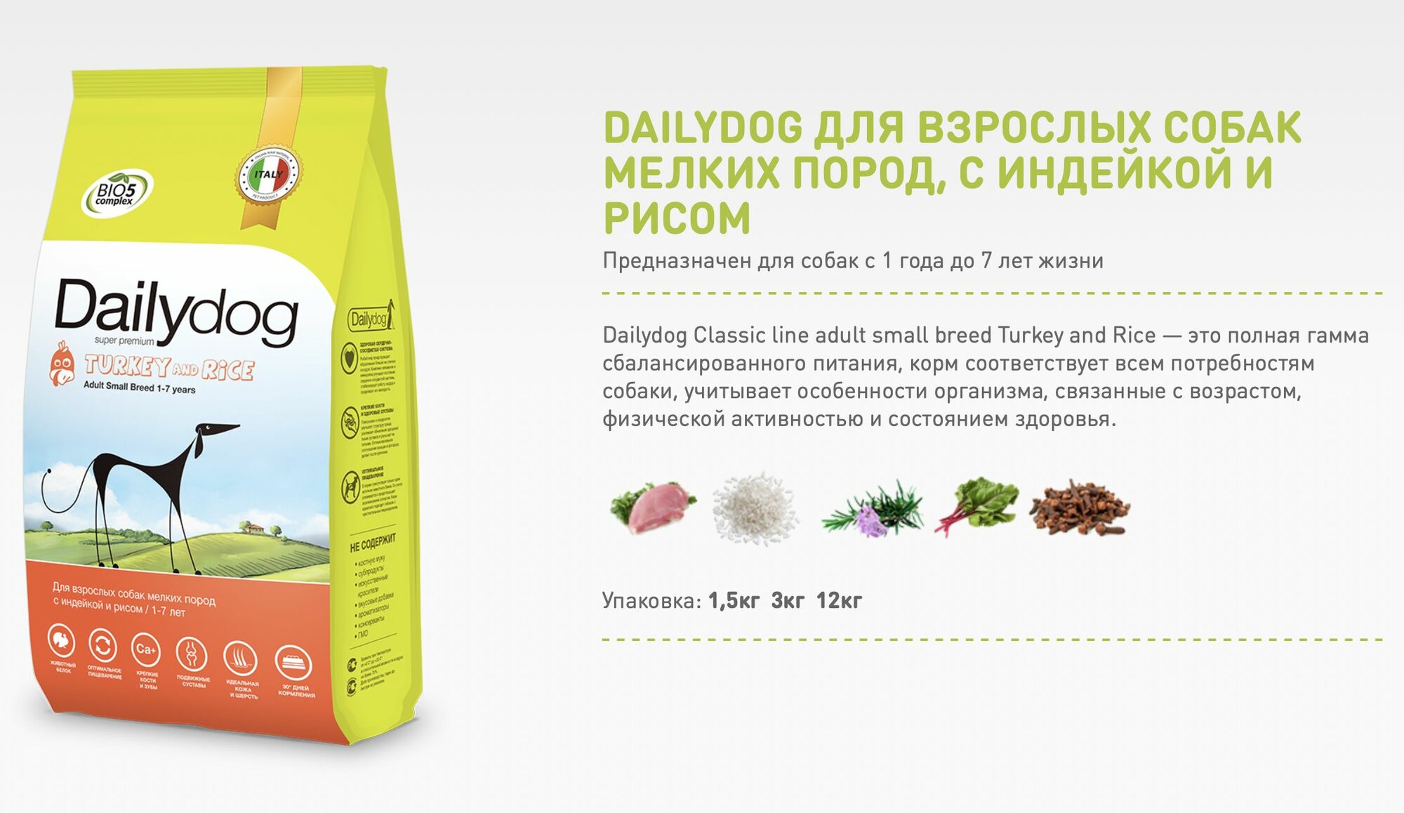 DailyDog Для взрослых собак мелких пород с индейкой и рисом 525ДД1,5, 1,5 кг, 57952 (1 шт)