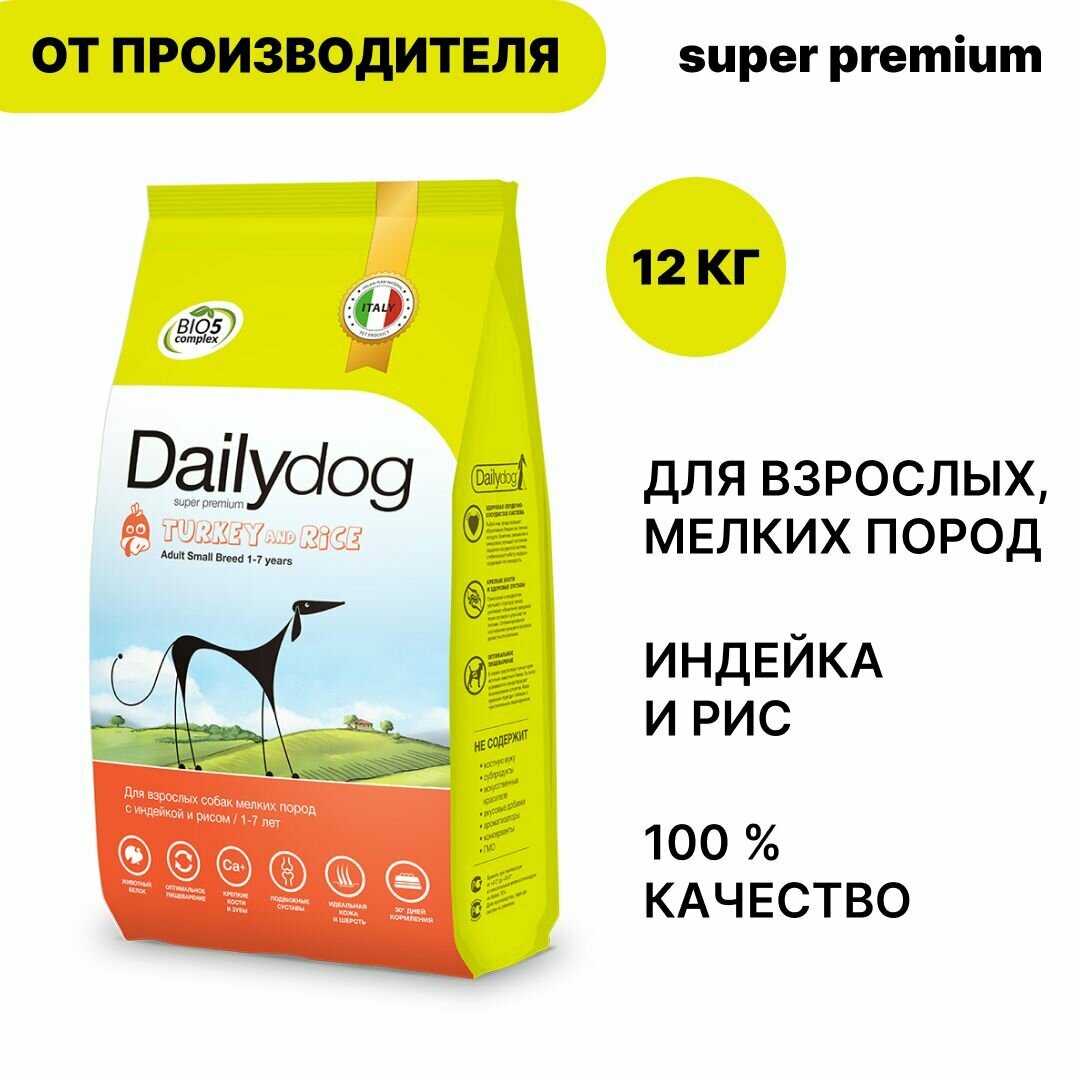 Сухой корм Dailydog Adult Small Breed для взрослых собак мелких и миниатюрных пород с индейкой и рисом - 12 кг