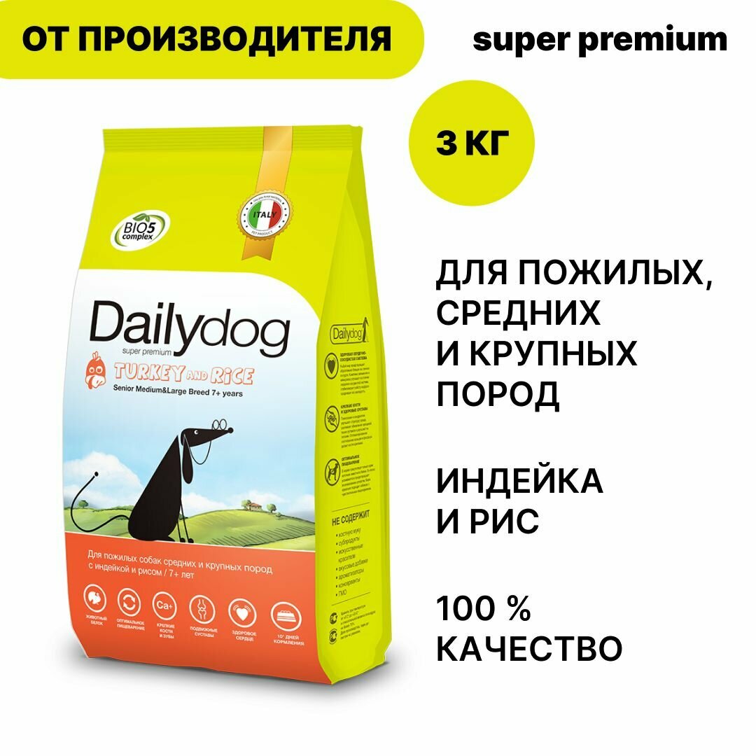 Сухой корм Dailydog Senior Medium&Large Breed для пожилых собак средних и крупных пород с индейкой и рисом - 3 кг