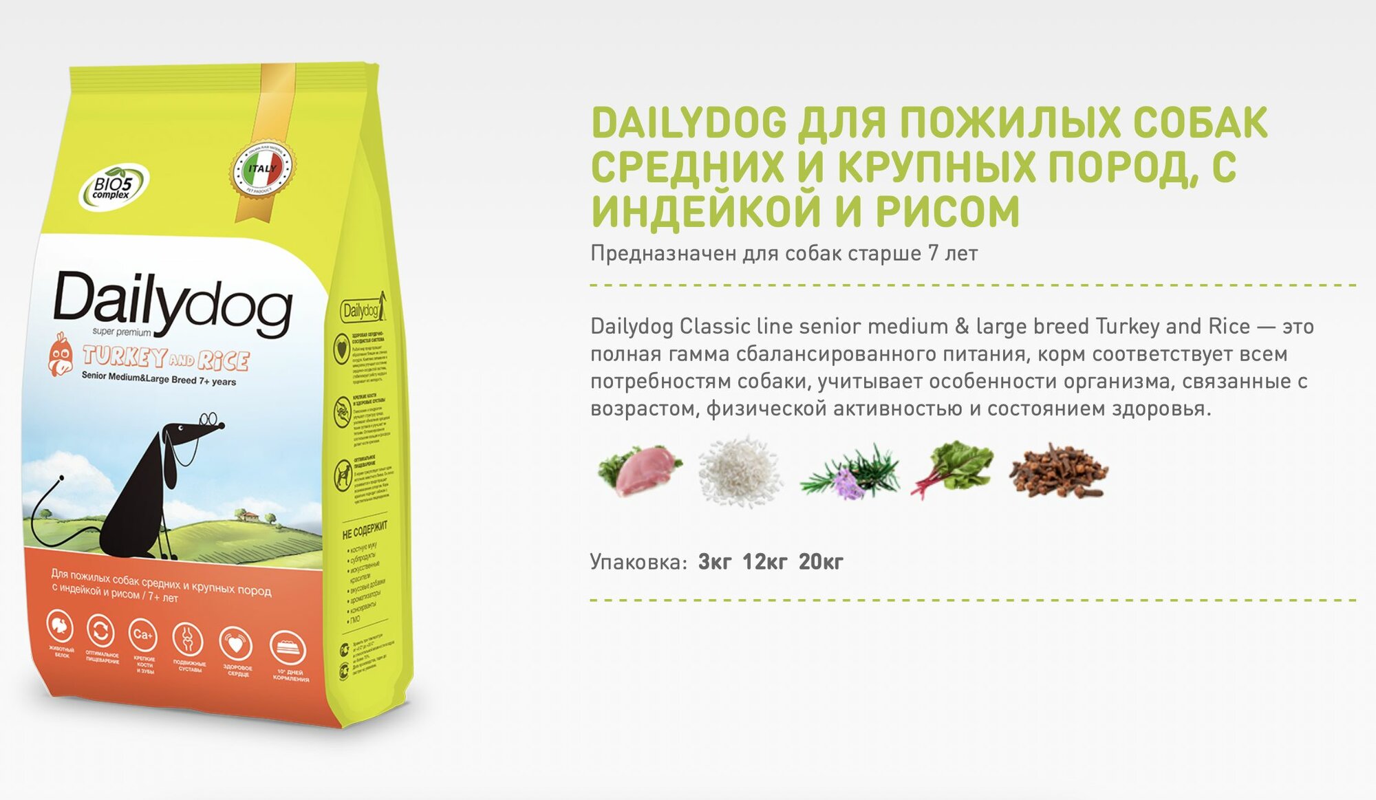 DailyDog Для пожилых собак средних и крупных пород с индейкой и рисом 245ДД | SENIOR , 12 кг, 42391