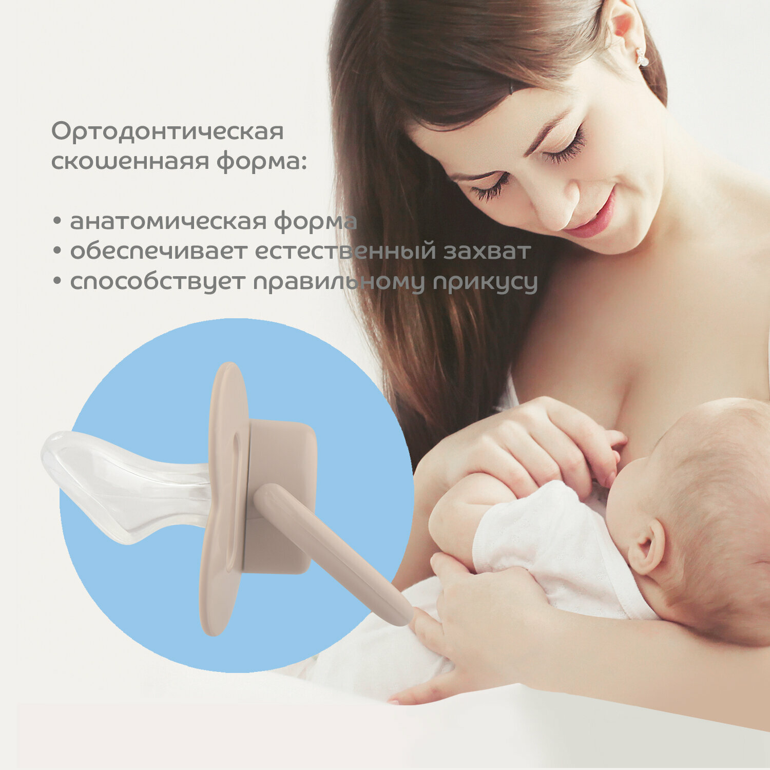 | Дополнительная информация | не содержит бисфенол-А (BPA free); скошенный силиконовый сосок; отверстия в нагубнике для циркуляции воздуха; кольцо для клипсы-держателя |