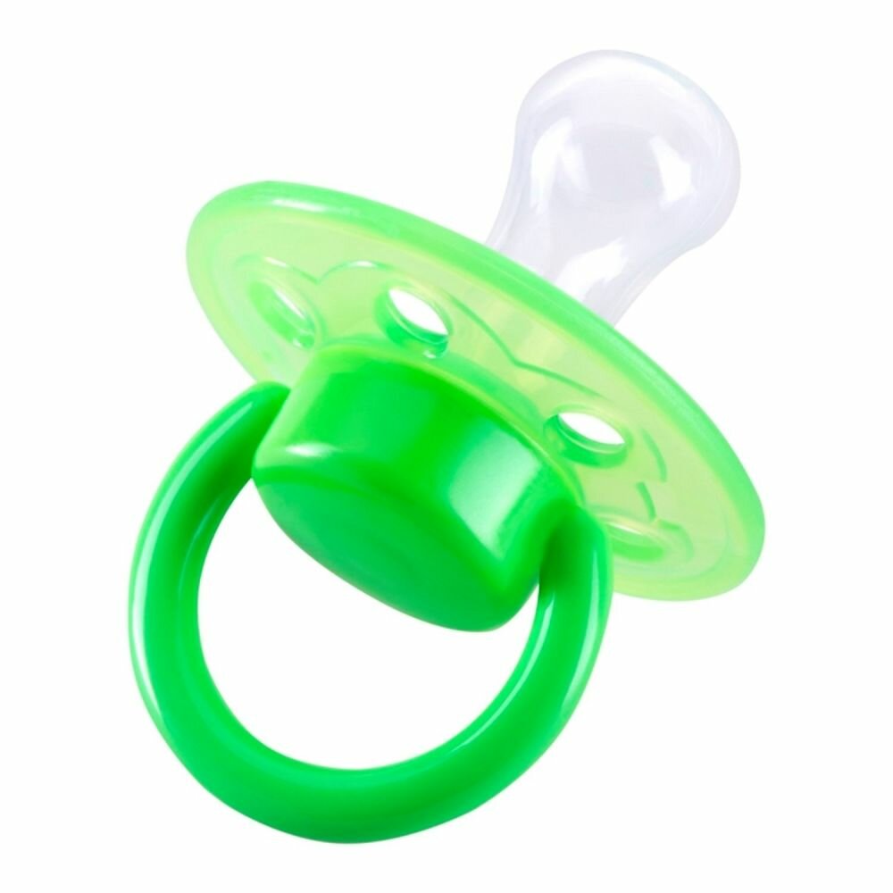 Соска-пустышка Курносики силиконовая классическая, нагубник-солнышко зеленая, 3+, 1 шт.