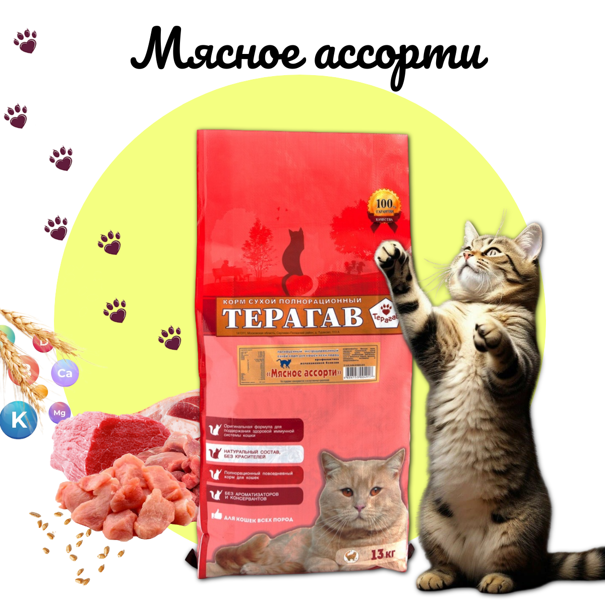 Сухой корм терагав мясное ассорти для взрослых кошек (13 кг)