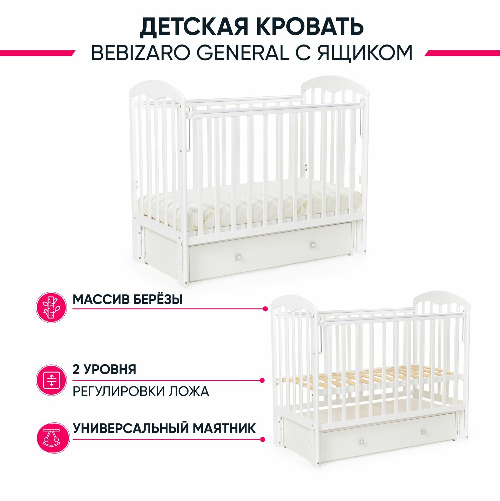 Кровать BEBIZARO GENERAL WHITE Маятник универсальный с ящиком интересное: