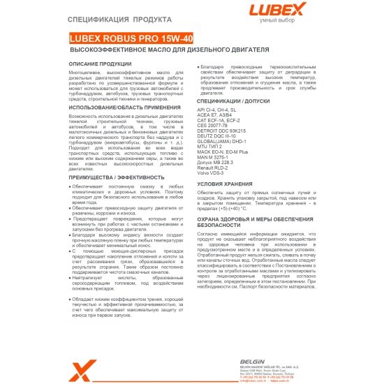 L019-0773-0404 LUBEX Мин. мот.масло ROBUS PRO 15W-40 CH-4/CI-4/SL A3/B4/E7 (4л)