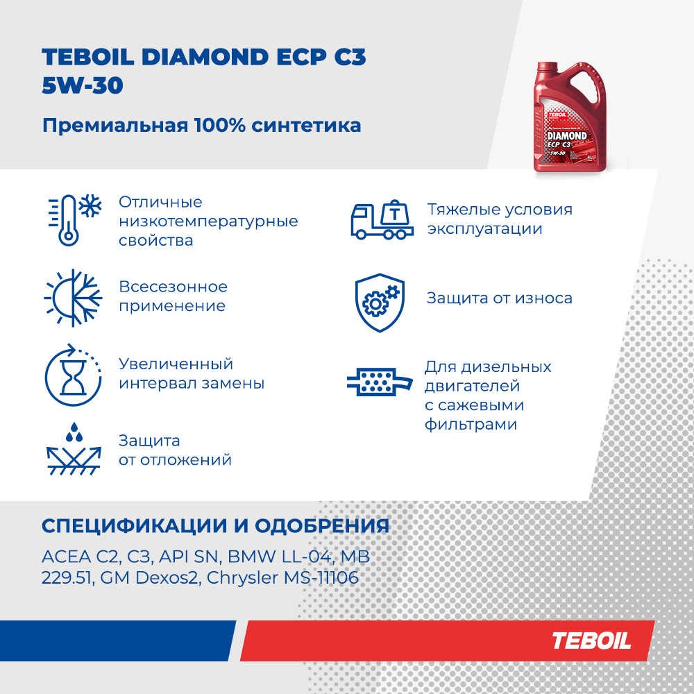 Ниже Вы можете прочитать отзывы на Масло моторное TEBOIL DIAMOND ECP C3 5W-30 канистра 4Л, ознакомится с подробными характеристиками, посмотреть интересные обзоры и фотографии на Масло моторное TEBOIL DIAMOND ECP C3 5W-30 канистра 4Л.