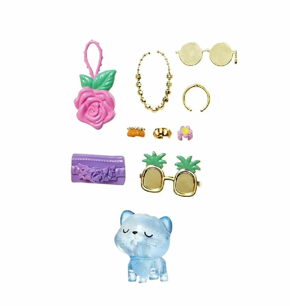 | Комплектация | 1 кукла,1 питомец,8 предметов одежды,13 аксессуаров (аксессуары включают в себя украшенную жемчугом сумочку, белый пояс с бантом, серебристые украшения, солнцезащитные очки, повязку на голову с кошачьими ушками и многое другое) |