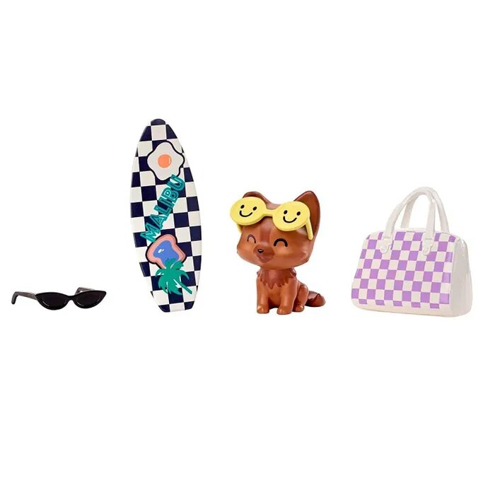 | Комплектация | 1 кукла,1 питомец,8 предметов одежды,13 аксессуаров (аксессуары включают в себя украшенную жемчугом сумочку, белый пояс с бантом, серебристые украшения, солнцезащитные очки, повязку на голову с кошачьими ушками и многое другое) |