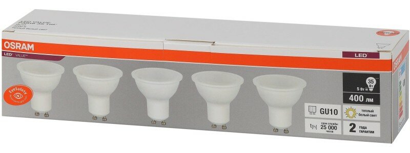 Упаковка из 5 светодиодных ламп LED Value LVPAR1635 5SW/830 230В GU10 RU OSRAM