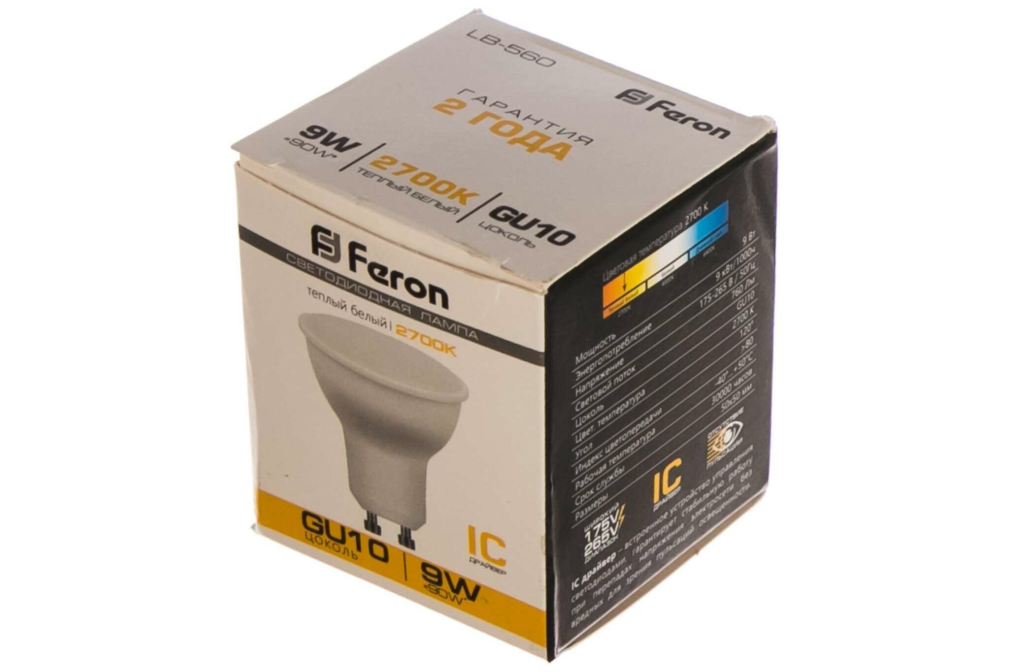 Лампа светодиодная Feron LB-560 25842, GU10, MR16, 9 Вт, 2700 К