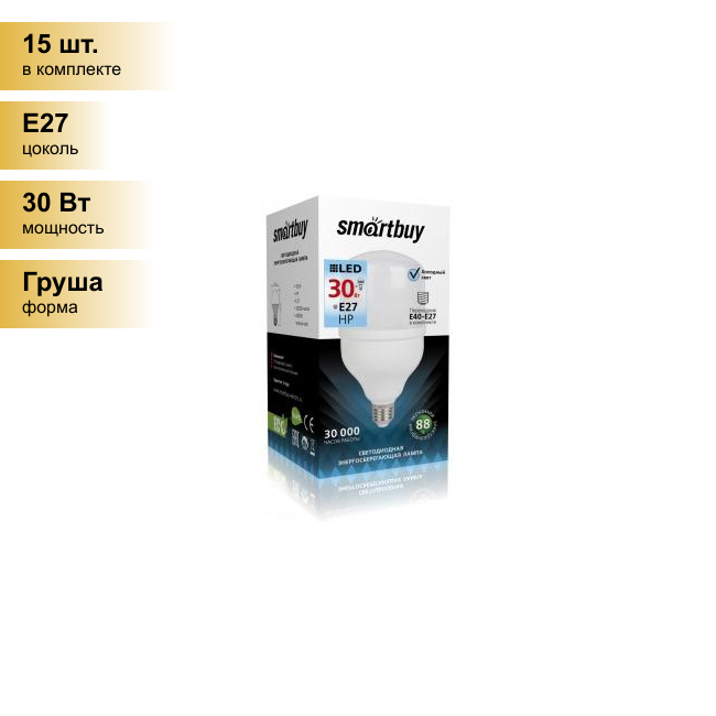 Сохранить(15 шт.) Светодиодная лампочка Smartbuy высокомощн. ЛОН E27 30W(2700lm) 6500K 6K SBL-HP-30-65K-E27 . Цоколь E27 интересное: