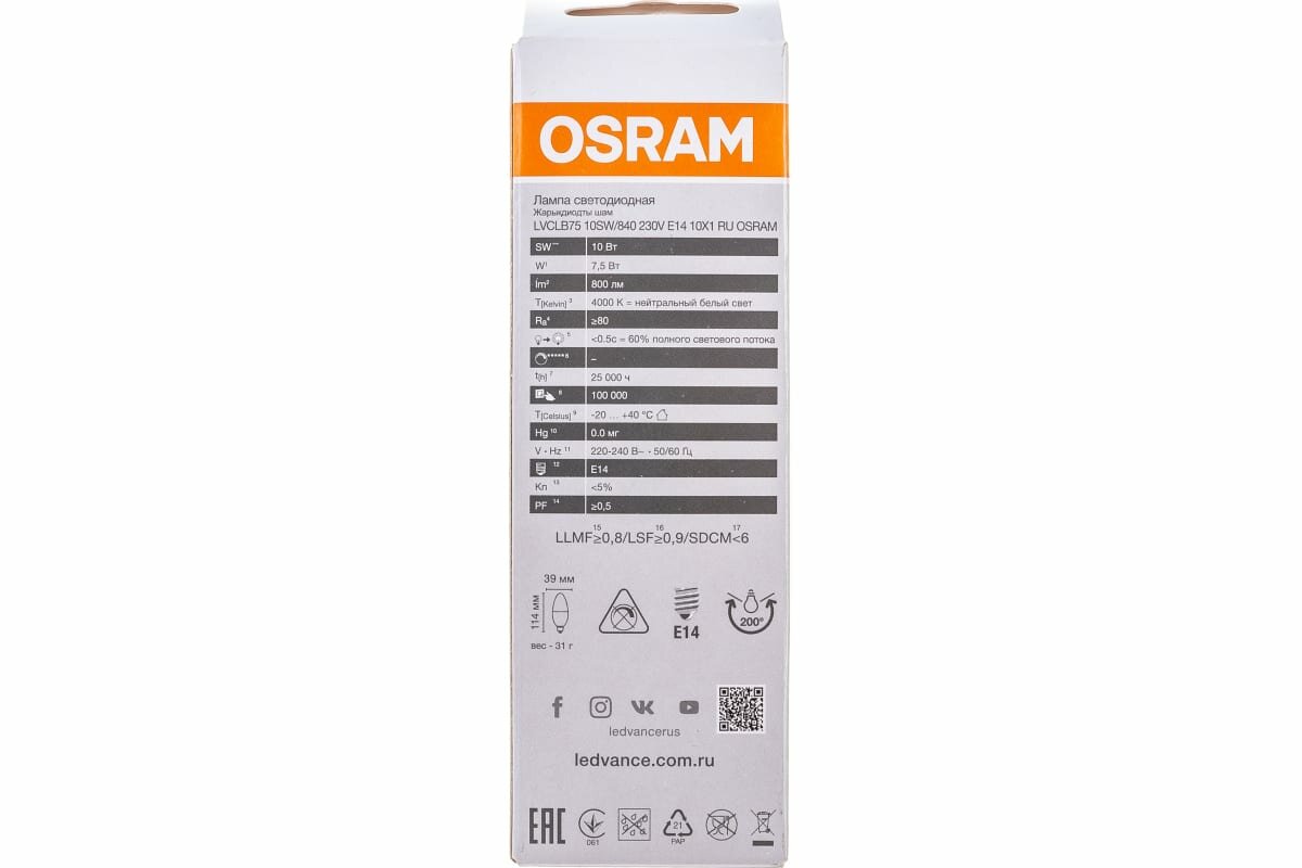 Ниже Вы можете прочитать отзывы на Лампочка светодиодная OSRAM LED Value Е14 4000К B свеча 10Вт 800Лм 4058075579187, ознакомится с подробными характеристиками, посмотреть интересные обзоры и фотографии на Лампочка светодиодная OSRAM LED Value Е14 4000К B свеча 10Вт 800Лм 4058075579187.