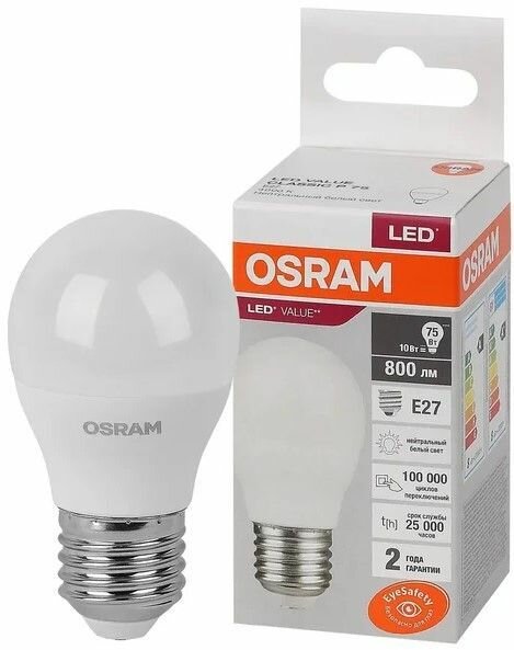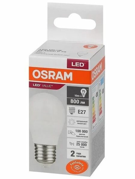 Ниже Вы можете прочитать отзывы на Лампочка светодиодная OSRAM LED Value P E27 4000К шар 10Вт 800Лм 4058075579927, ознакомится с подробными характеристиками, посмотреть интересные обзоры и фотографии на Лампочка светодиодная OSRAM LED Value P E27 4000К шар 10Вт 800Лм 4058075579927.
