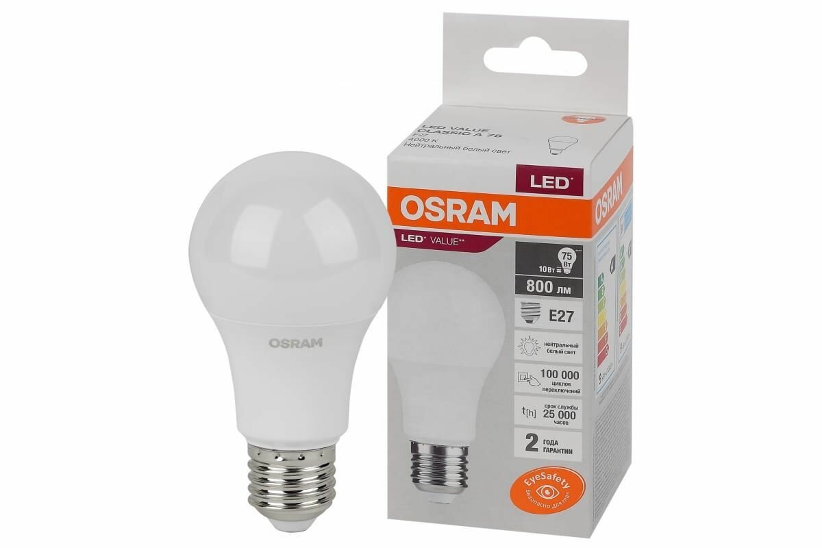 Ниже Вы можете прочитать отзывы на Лампочка светодиодная OSRAM LED Value Е27 4000К груша 10Вт 800Лм 4058075578852 (комплект из 5 шт), ознакомится с подробными характеристиками, посмотреть интересные обзоры и фотографии на Лампочка светодиодная OSRAM LED Value Е27 4000К груша 10Вт 800Лм 4058075578852 (комплект из 5 шт).