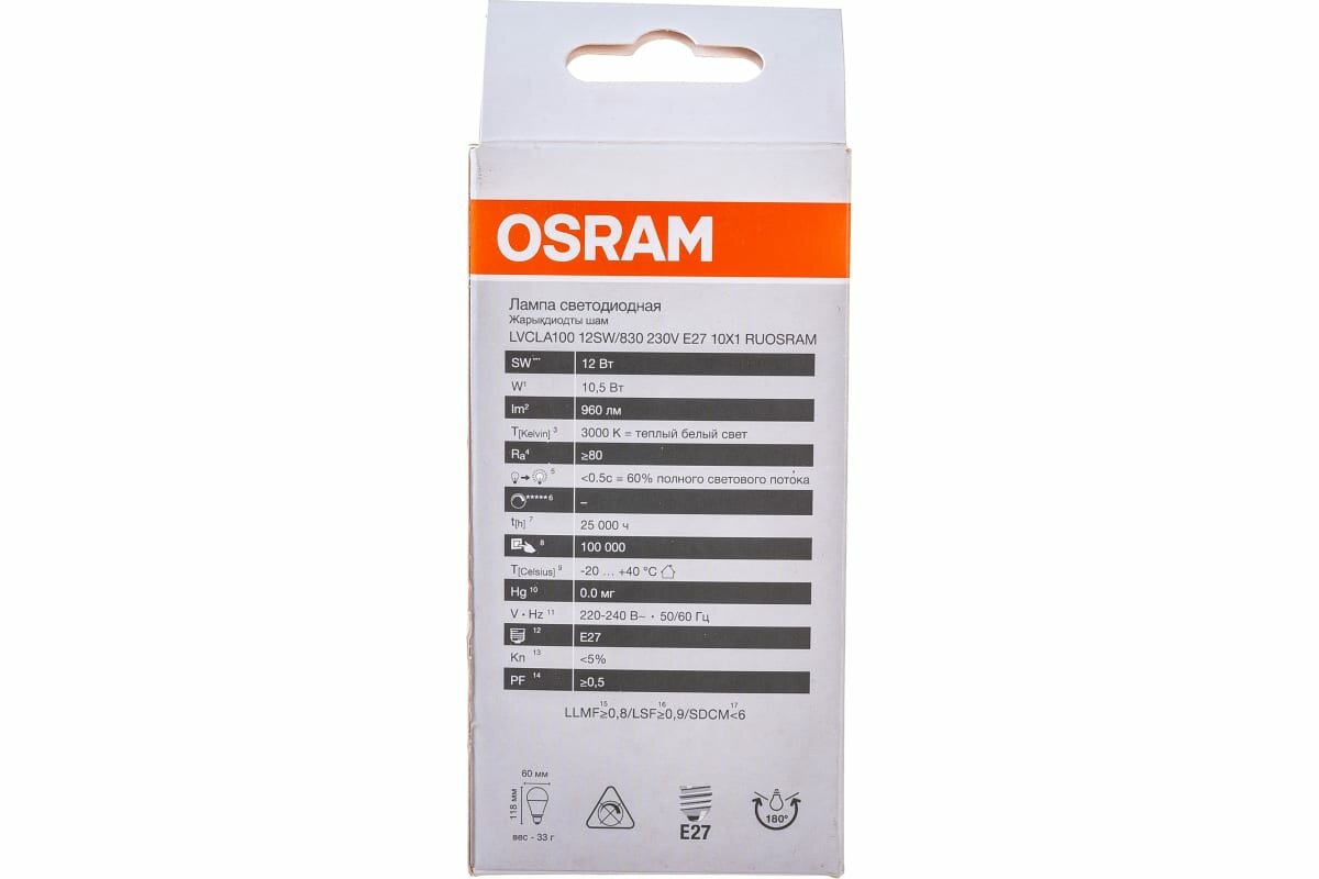 Купить Лампочка светодиодная Osram LED Value LED-A100 12w/830 E27 230V комплект 10шт. 4058075578975