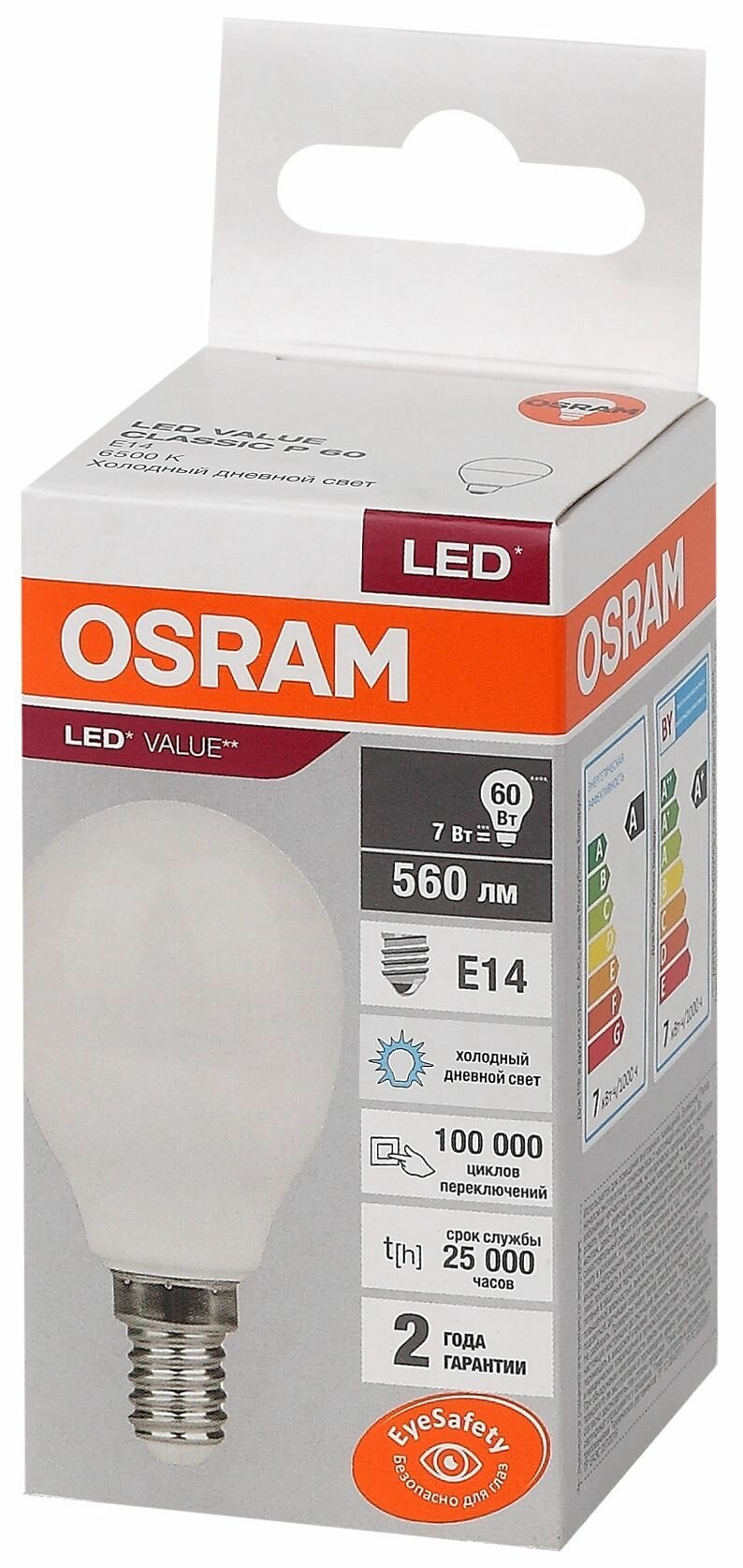 Купить Лампочка светодиодная Osram LED Value LED-P60 7Вт /865 E14 6500K FR шар 4058075579682 (комплект 5шт.)